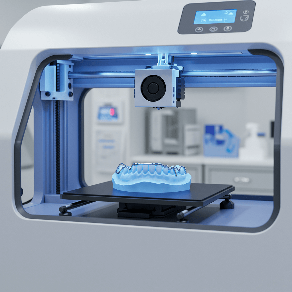 - Step 2: Precision 3D Printing & Fabrication -(Utilizing advanced 3D printers, we accurately print your models. Our skilled technicians then meticulously craft your custom appliance.)